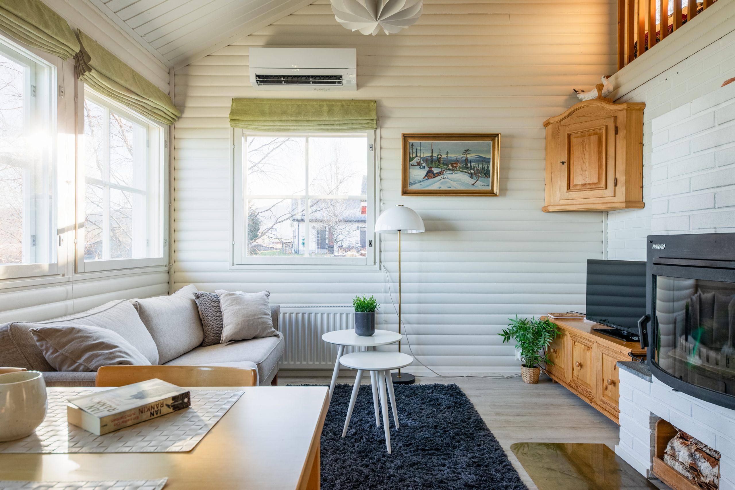 Illalla takkatulen loisteessa voit katsoa ilta-auringon punaamia tuntureita, kuin elokuvan lavasteita.