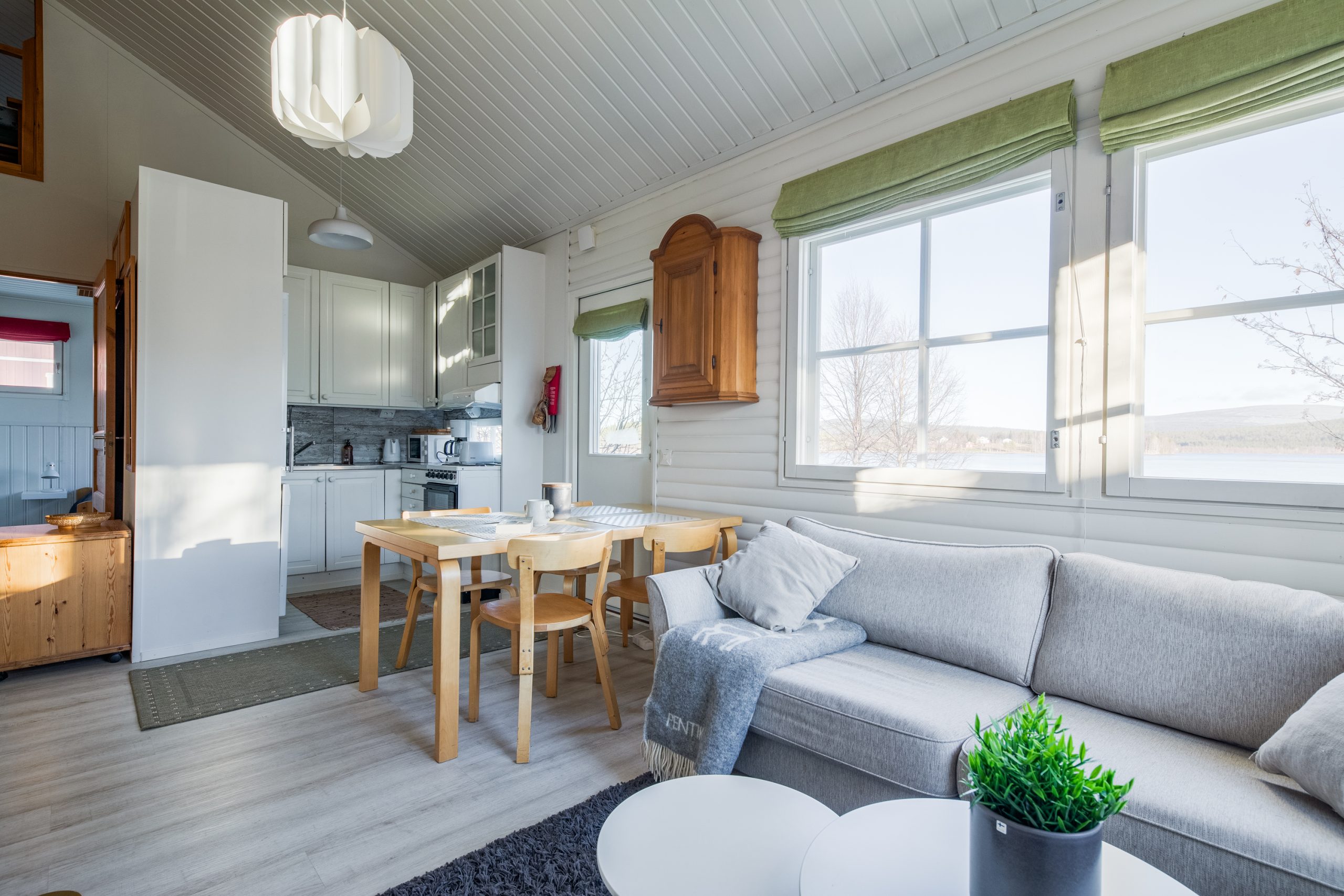 Kesällä voit uida omassa rannassa, soudella järvellä mökin veneellä tai ihailla tuntureiden yötöntä yötä sohvaltasi tai terassilta.