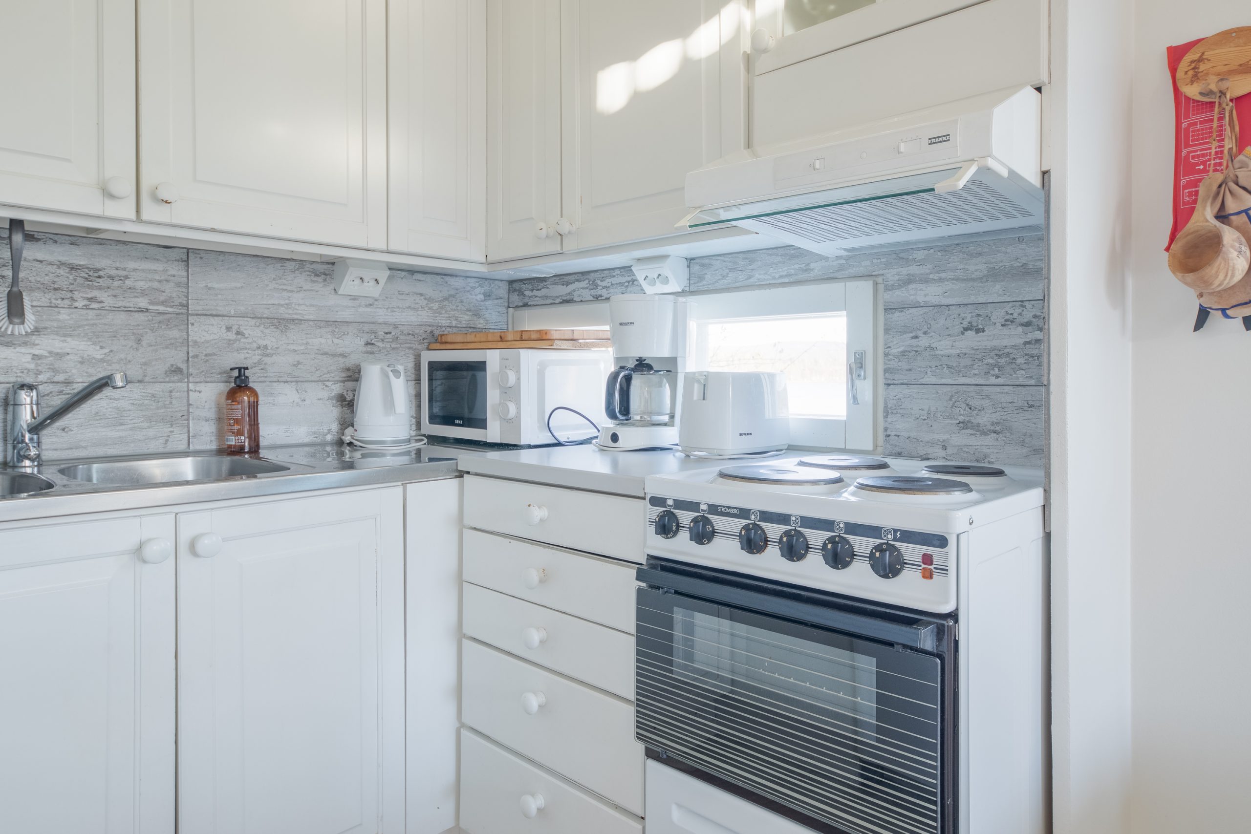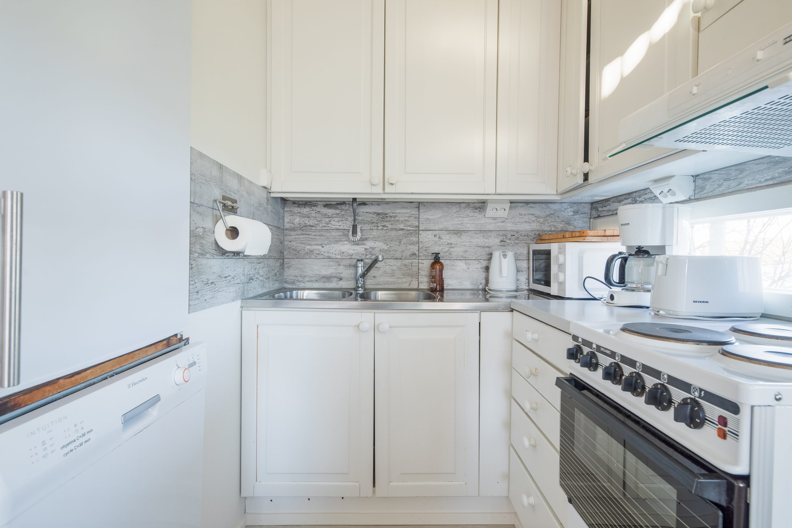 Kaksi tilavaa makuuhuonetta, kylpyhuone ja sauna, täydellisesti varustettu keittiö ja terassi omalla tulipaikalla, kuitenkin omalla rauhallisella sijainnilla lähellä palveluita.